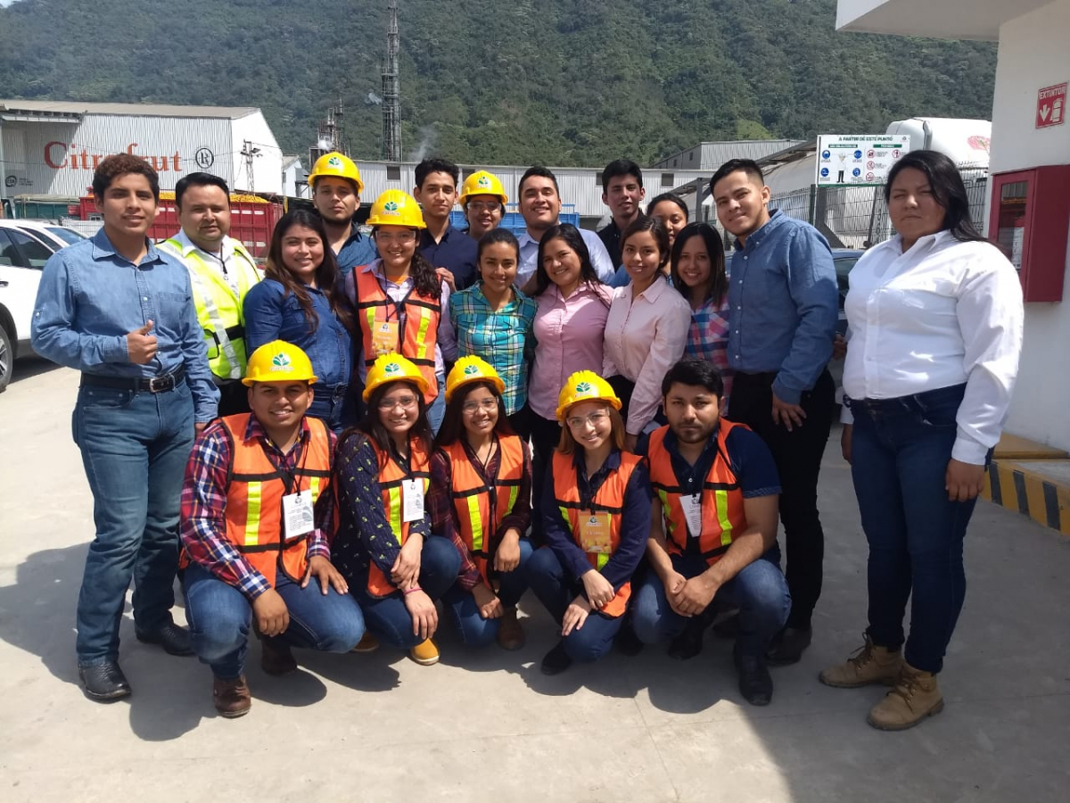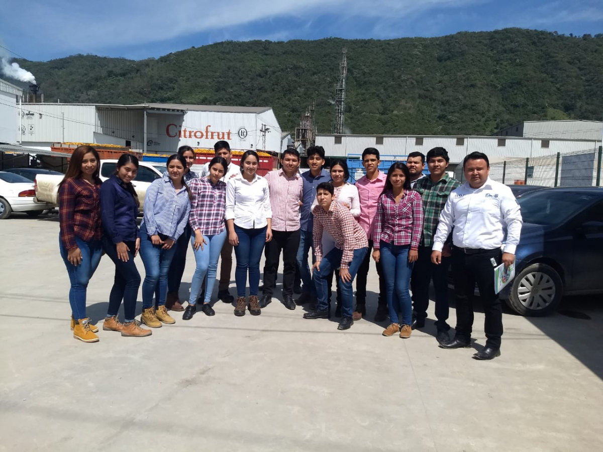 Visita guiada a la Empresa Citrofrut ubicada en Huichihuayán, S.L.P.; responsable del grupo el Ing. Rubén Quintero con alumnos y alumnas de 8vo semestre de la carrera de Ingeniería en Gestión Empresarial.