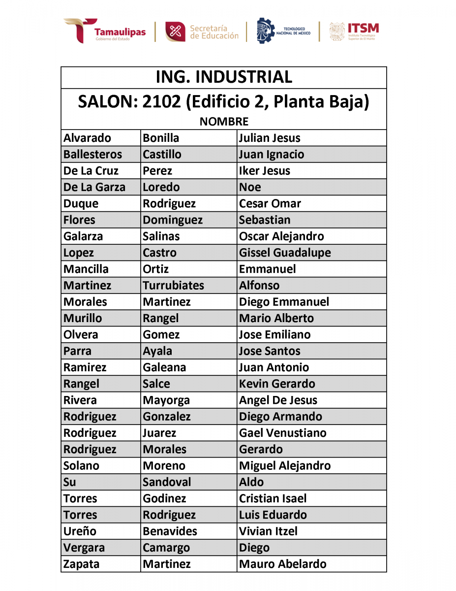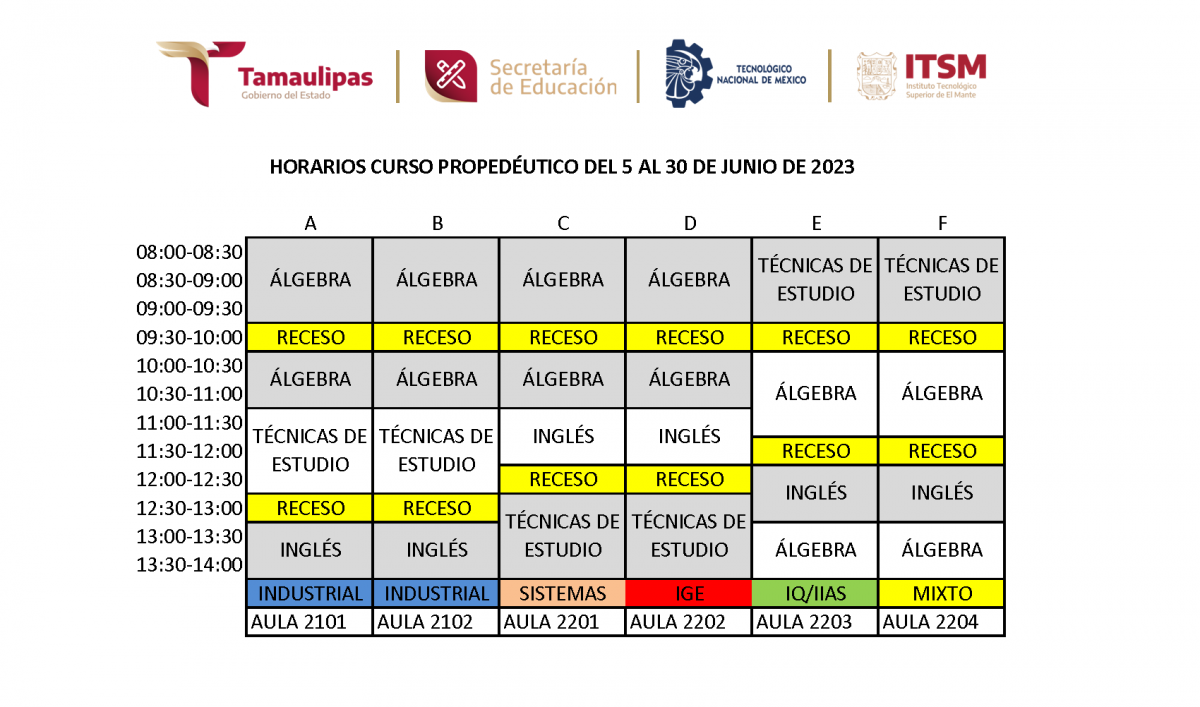 - Materias: Álgebra, Técnicas de Estudio e Inglés