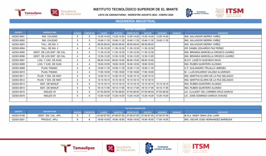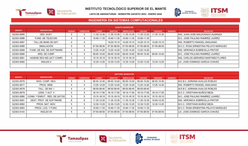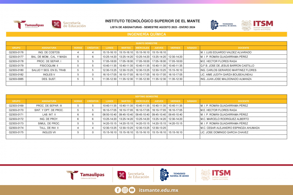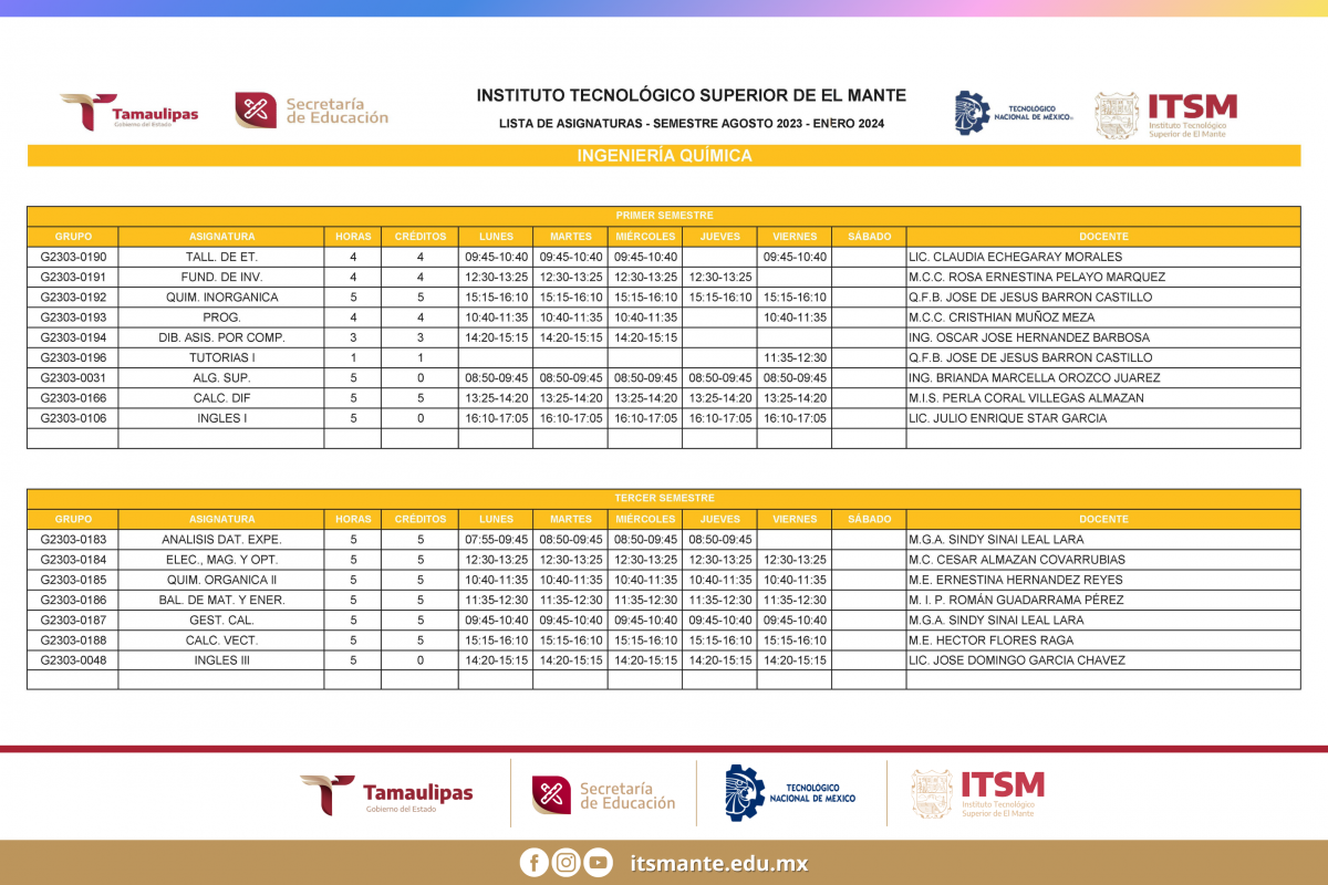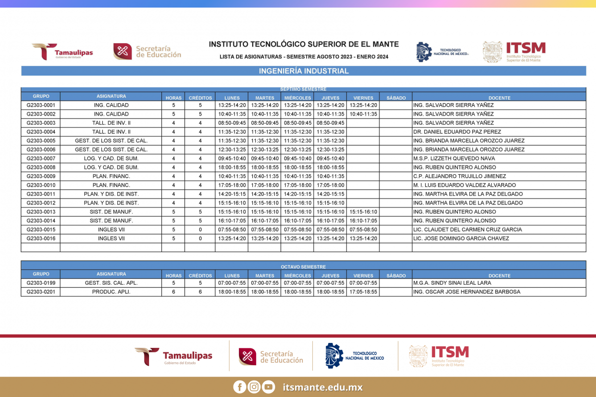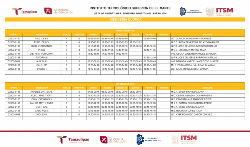 GRUPOS Y HORARIOS SEMESTRE AGOSTO – DICIEMBRE 2023
