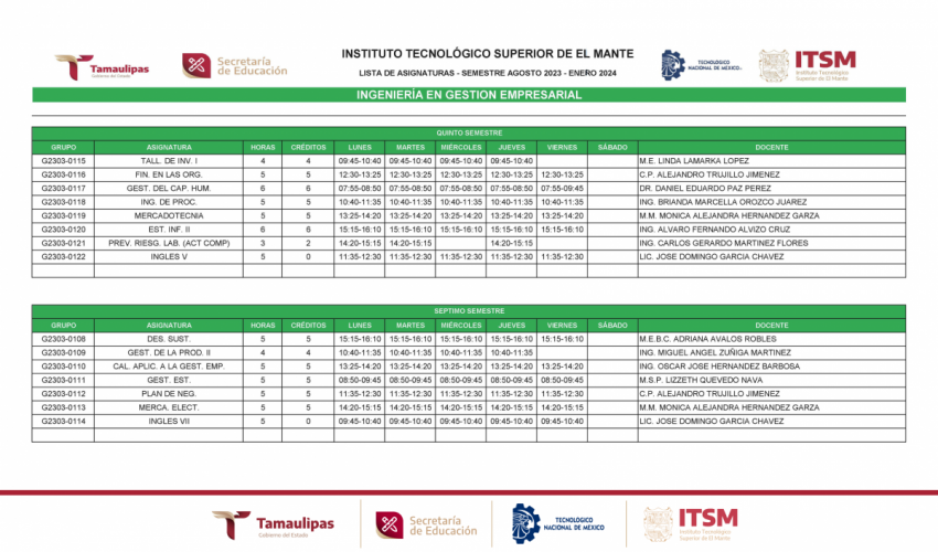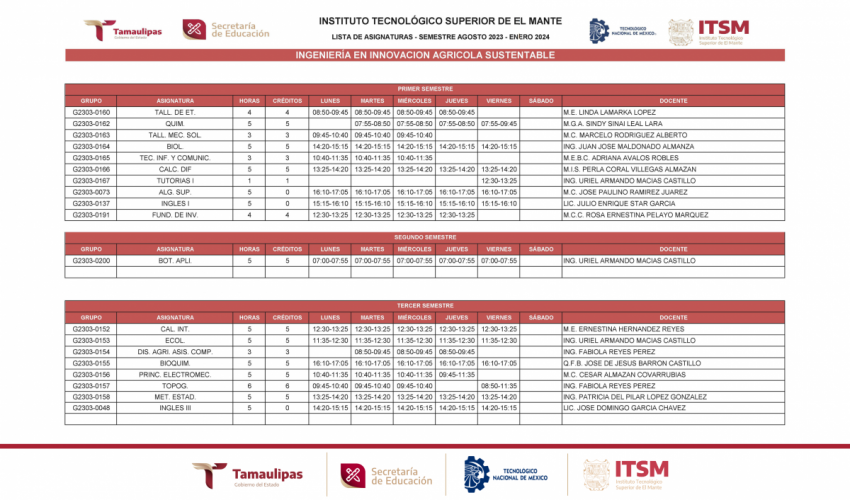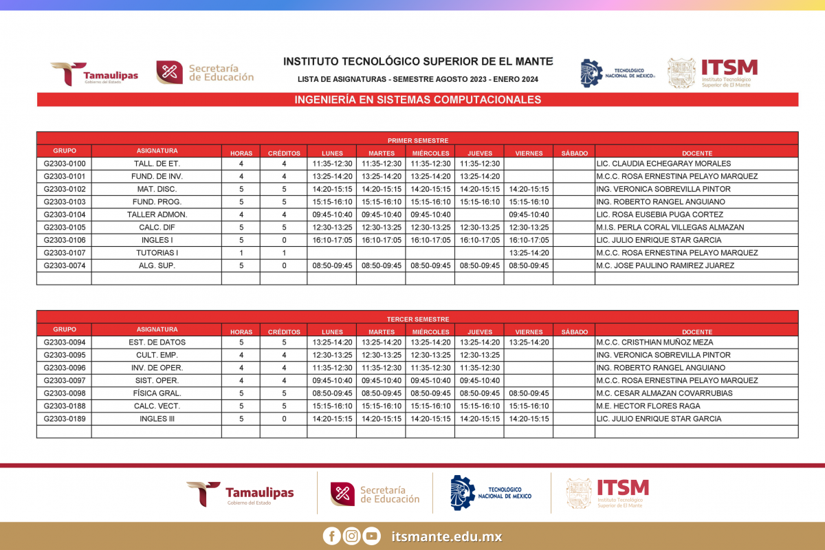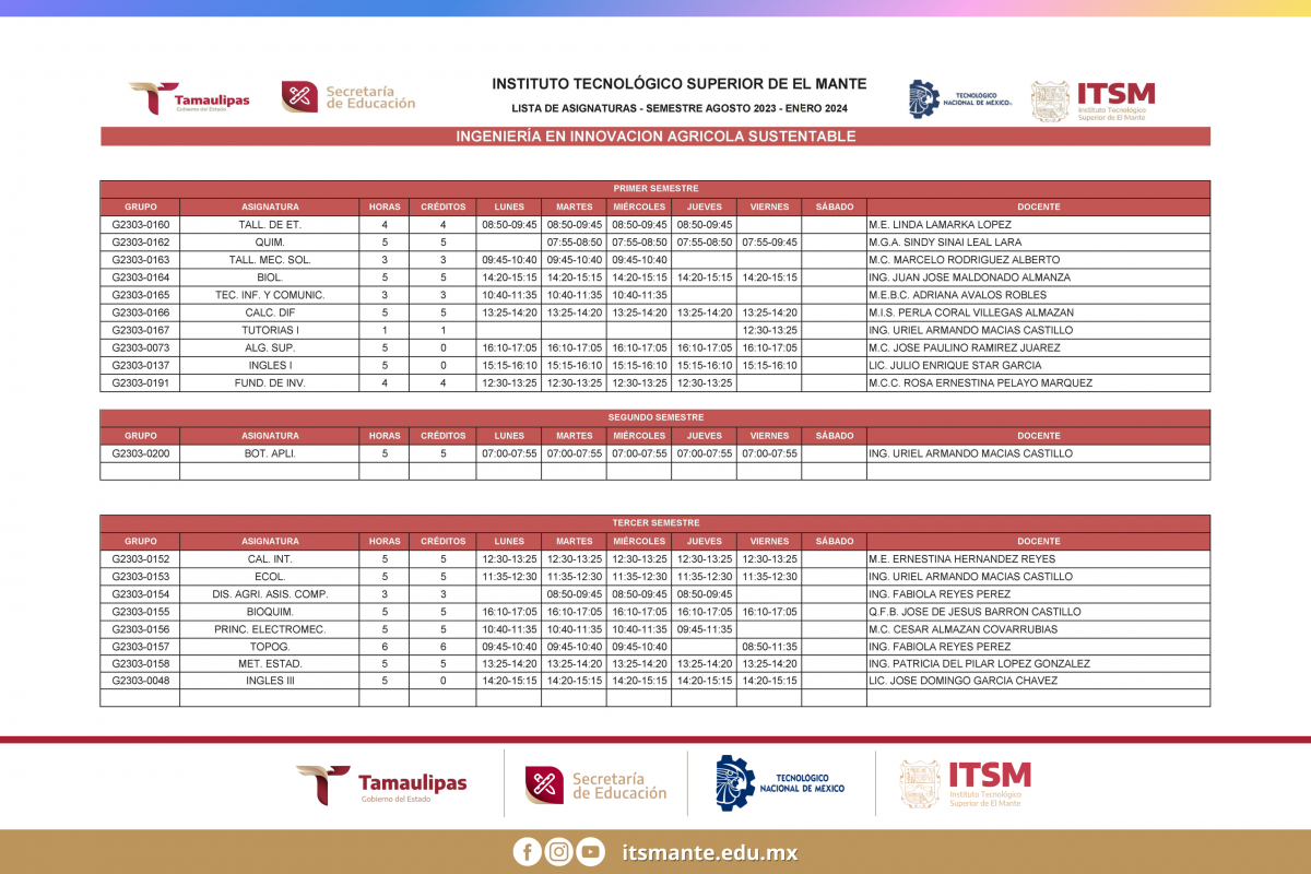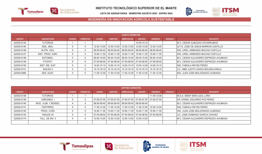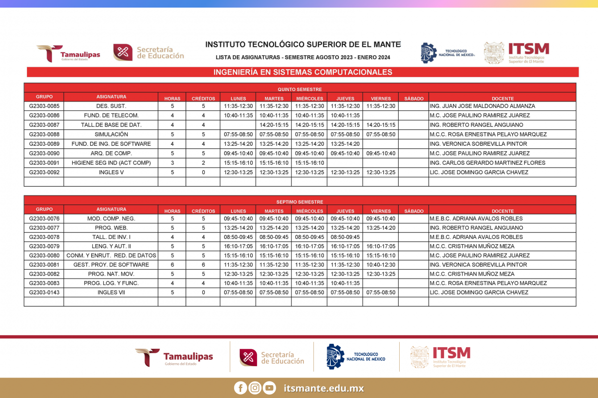 GRUPOS Y HORARIOS SEMESTRE AGOSTO – DICIEMBRE 2023