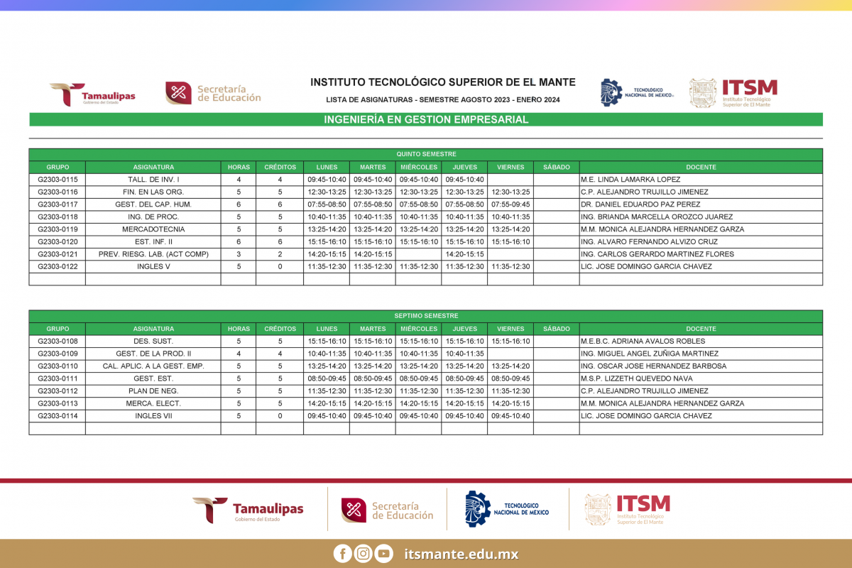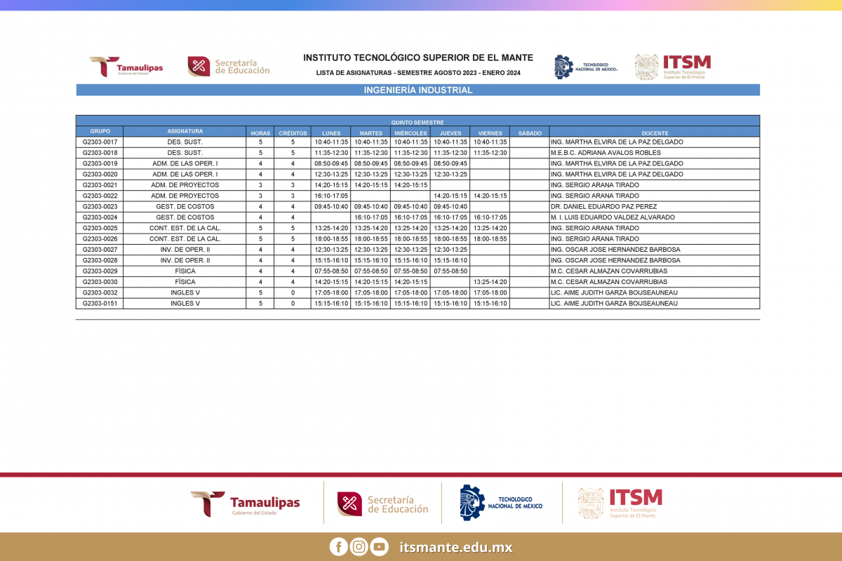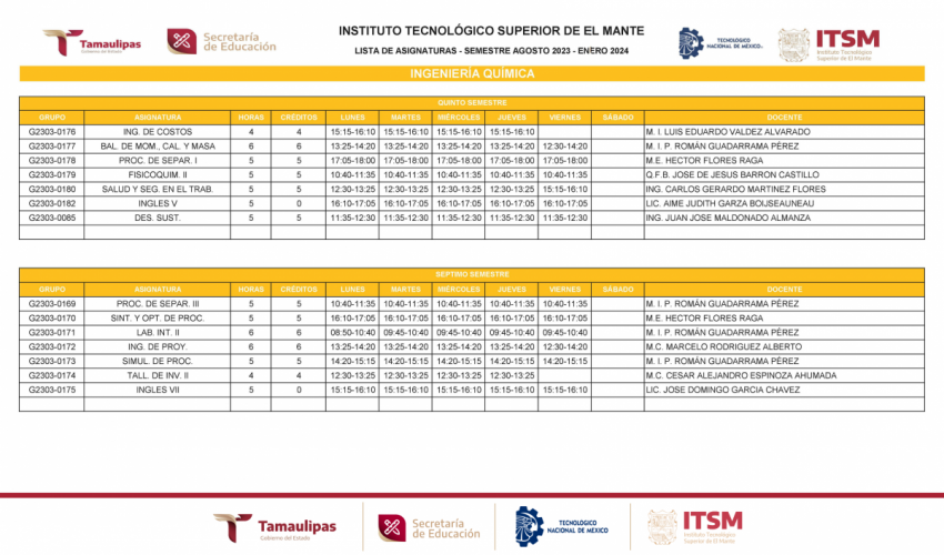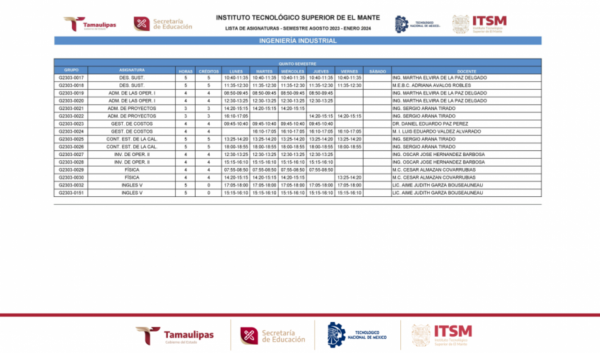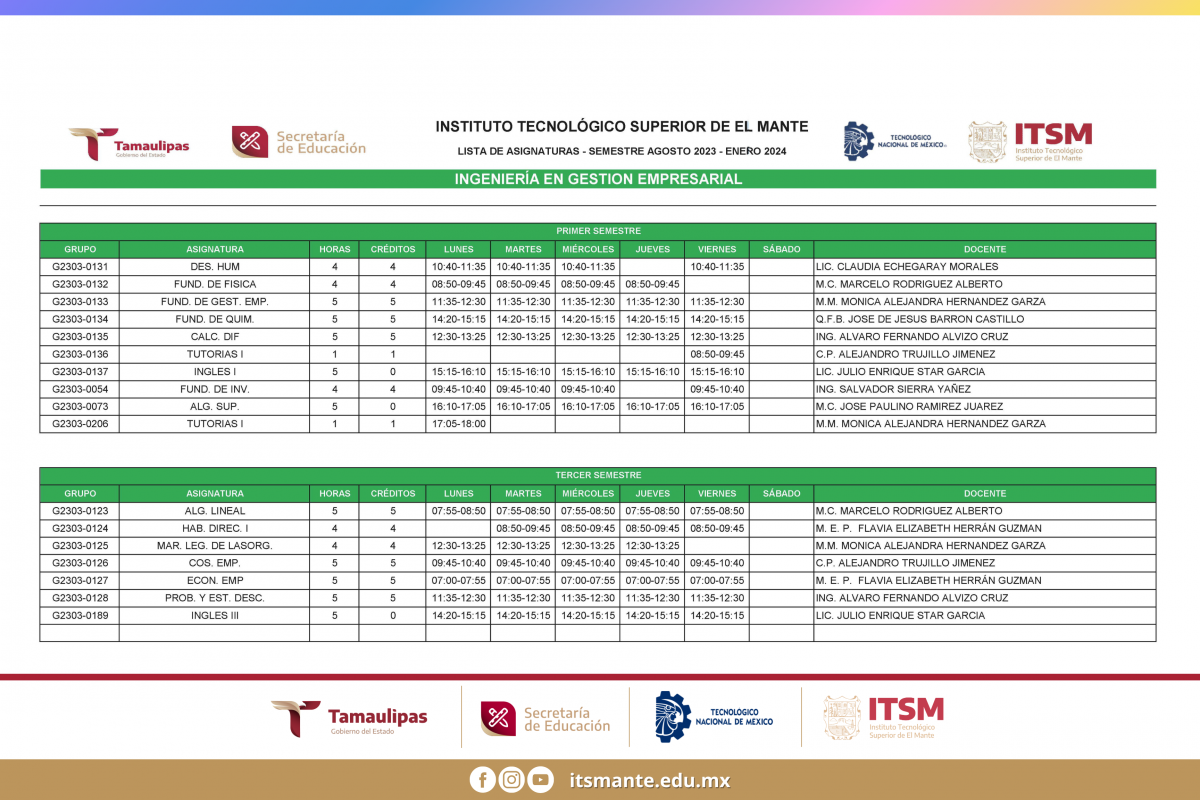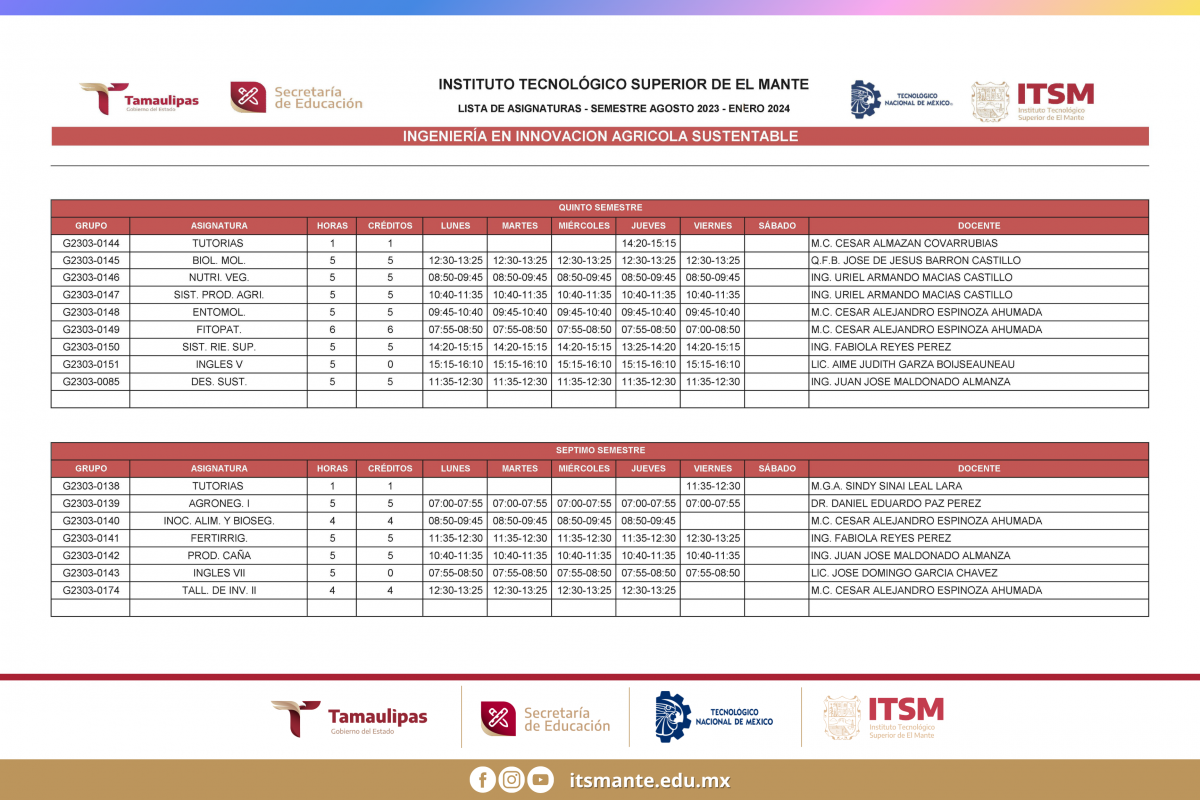GRUPOS Y HORARIOS SEMESTRE AGOSTO – DICIEMBRE 2023
